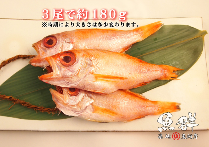 のどぐろ丸干しが3尾で約180gあります。3尾のサイズは多少バラつきます。