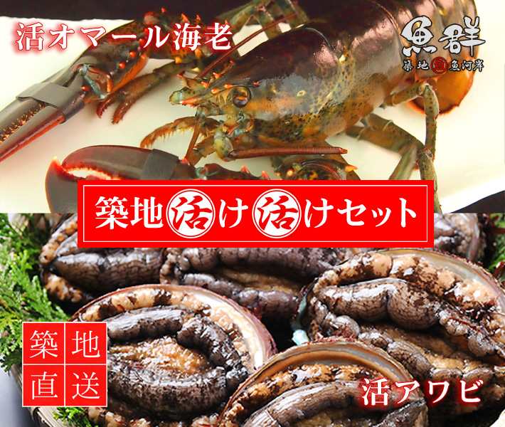 オマールとアワビの活け活けセット。ギフトやバーベキューに。