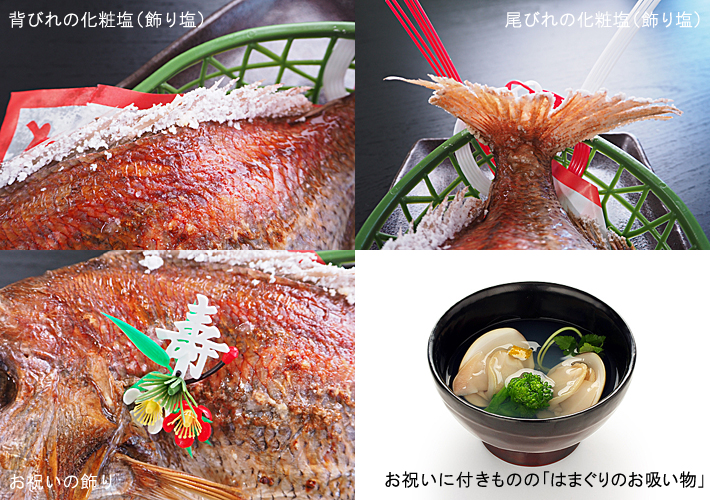 お食い初め(百日祝い)や長寿祝いなどのおめでたい日にふさわしい鯛です。