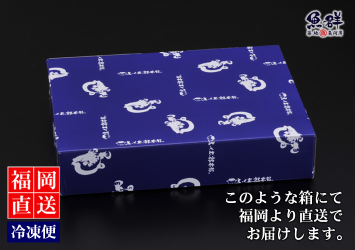 写真のような箱に入って、冷凍便でメーカー(福岡)より直送でお届けします。