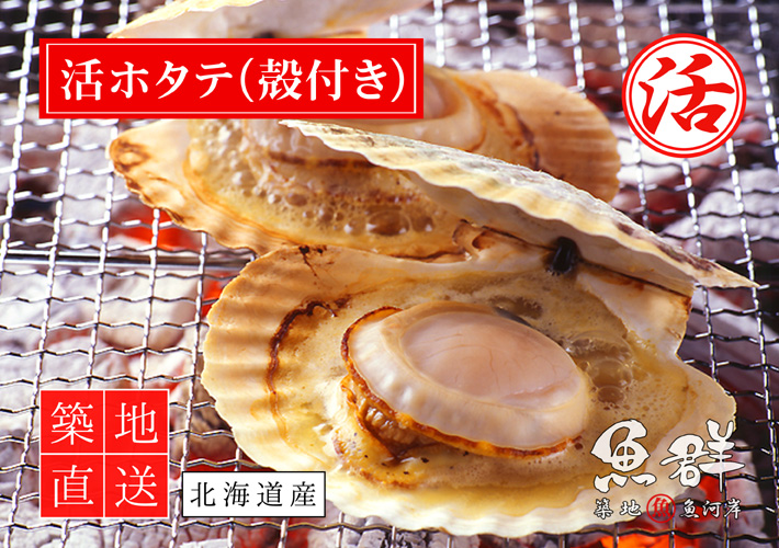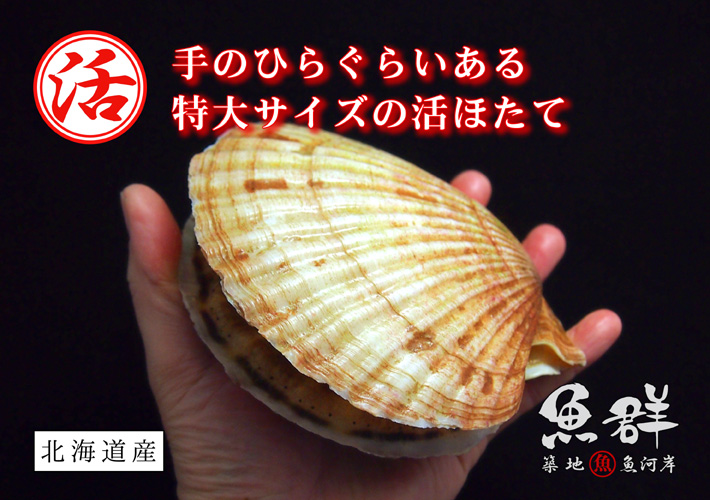 活きた特大ホタテ貝。北海道・三陸から鮮度よいものをお届け。