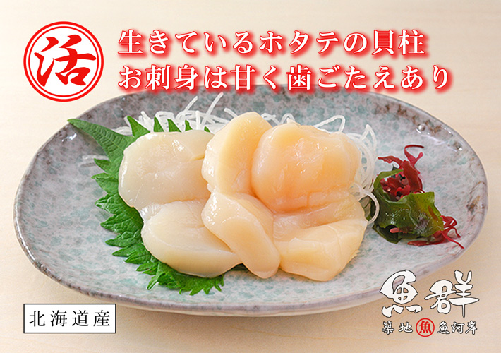 活ホタテ貝柱の刺し身