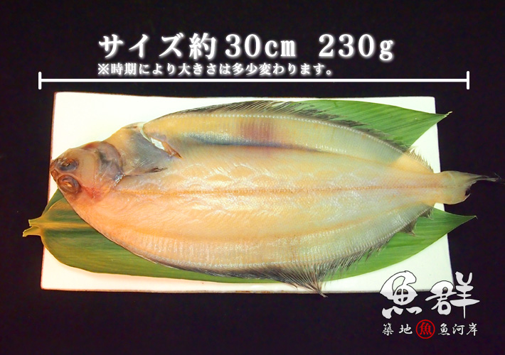 サイズは30cmくらいです。厚みがない魚ですので230gの重さです。骨が多い魚ですので、おかずというよりはおつまみです。