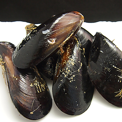 人気のあるムール貝を活きたままお届けします。三陸、ときどき愛知県から入荷されるムール貝は出汁がよくでます。ワイン蒸しやスープにお使いください。