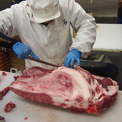 牛肉を加工するのは、魚をさばく以上に丁寧な作業を必要とします。経験のある職人が丁寧に作業し、安全で美味しい牛肉を生産しています。