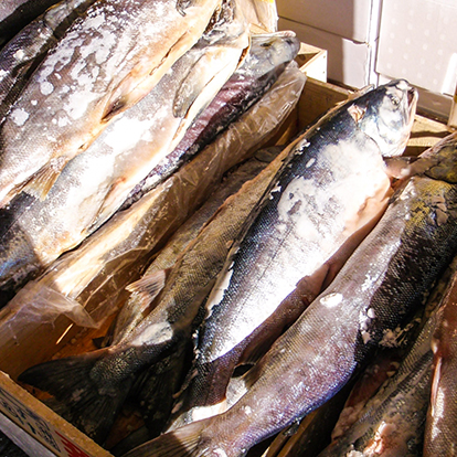 昔なつかしい激辛の塩っぱい塩鮭や鮭の香りがよい紅鮭のハラス等の鮭製品と、脂ののったサーモンのお刺身、塩麹がきいたサーモン塩辛を販売しています。