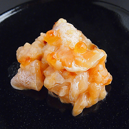 鮭サーモン類で新しい珍味も販売しています。塩麹に漬けたサーモンの塩辛です。ご飯がすすむ最強の珍味です。